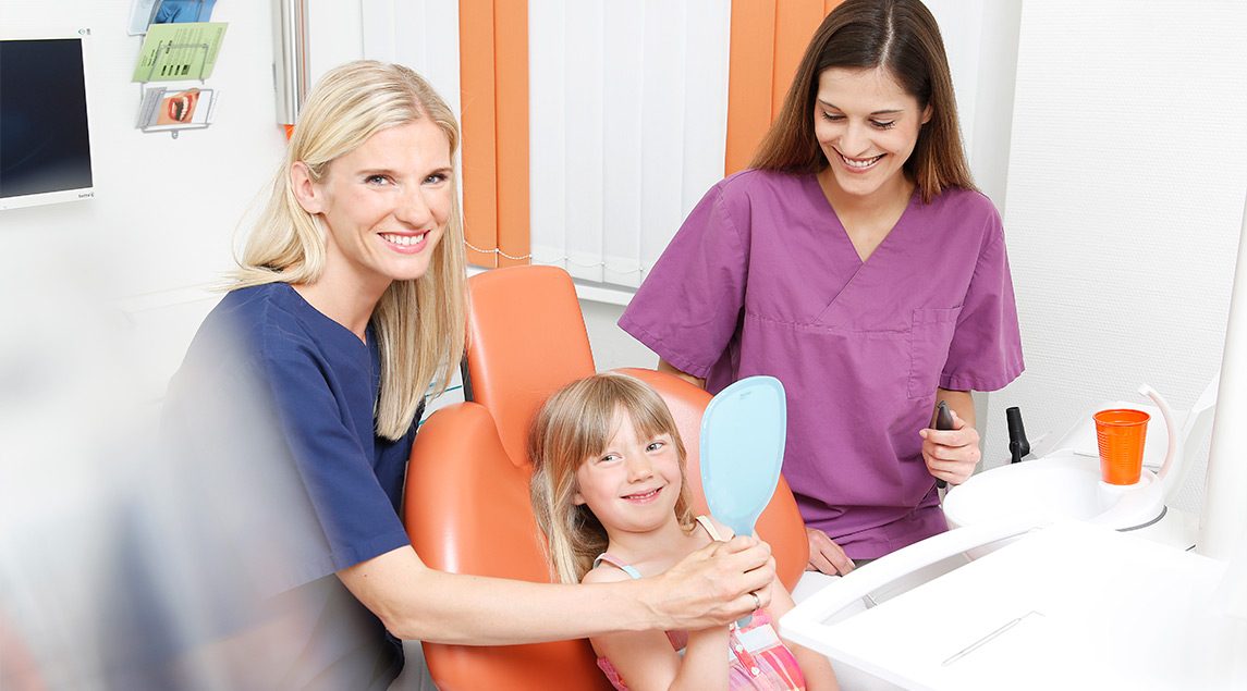 In unserer Praxis sind nicht nur Erwachsene herzlich willkommen, mit Hingabe und Einfühlsamkeit kümmern wir uns auch um unsere kleinen Patienten. Dabei steht besonders die Vermeidung von Karies durch Prophylaxe im Vordergrund. Sollte doch mal ein Zähnchen betroffen sein, so gehen wir einfühlsam auf Ihren Schützling ein und reparieren die vorhandene Stelle zügig und gründlich.